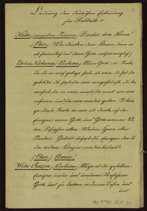 "Ordnung der deutschen Erbauung für Sabbath"