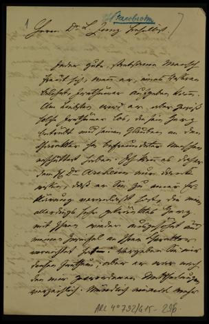 Darauf:Exzerpt eines Briefs von Leopold Zunz, auf den dieser Brief die Antwort ist