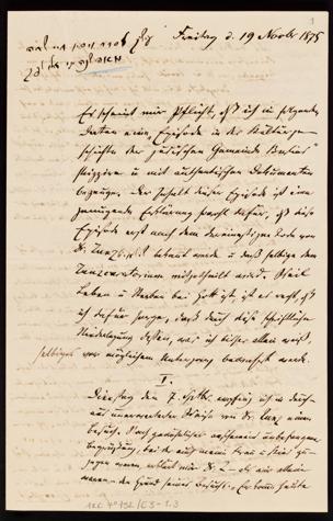 Schilderung der Umstände, unter denen Leopold Zunz durch die Jüdische Gemeinde aus einer finanziellen Notlage geholfen wurde